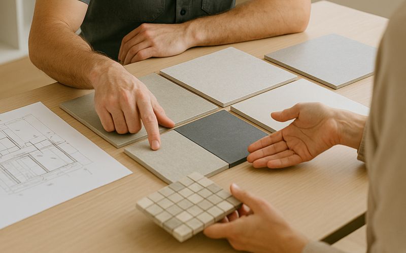 In unserer Ausstellung entdecken Sie eine große Auswahl an Fliesen, Natursteinen und Mosaiken. Lassen Sie sich inspirieren, vergleichen Sie Materialien und finden Sie die perfekte Grundlage für Ihr Projekt.