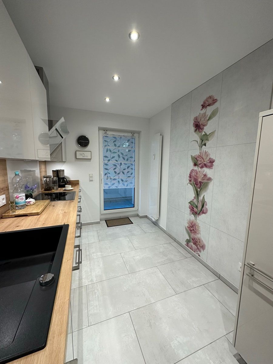 Bei diesem Küchenprojekt stand eine klare, moderne Raumwirkung im Vordergrund. Gemeinsam mit den Bauherren entwickelten wir ein Fliesenkonzept, das die puristische Linienführung der Küche unterstützt und gleichzeitig alltagstauglich ist.